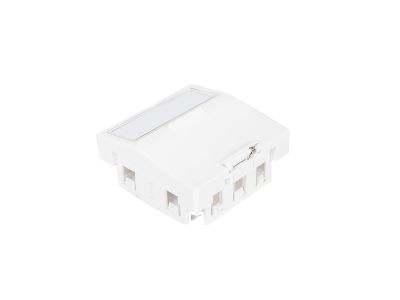 Adapter MMC 45x45mm 1xRJ45 (pojedynczy). Przeznaczony do montażu modułów RJ45 keystone. Kątowy montaż modułów zmniejsza potrzebną głębokość montażową w puszkach i trasach kablowych.