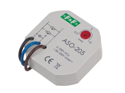 Automat schodowy ASO-205 marki F&F to profesjonalne urządzenie sterujące, zaprojektowane z myślą o efektywnym zarządzaniu oświetleniem w ciągach komunikacyjnych. Urządzenie pracuje pod napięciem znamionowym 230 V AC i charakteryzuje się maksymalnym prądem obciążenia w kategorii AC-1 wynoszącym 10 A, co pozwala na bezpośrednie sterowanie znacznymi obciążeniami rezystancyjnymi. Sercem urządzenia jest niezawodny przekaźnik z konfiguracją styków 1 × NO (normalnie otwarty). Kluczową funkcjonalnością automatu jest płynna regulacja czasu wyłączenia w szerokim zakresie od 30 sekund (0,5 min) do 10 minut, co pozwala na precyzyjne dostosowanie pracy systemu do specyfiki obiektu. Urządzenie cechuje się minimalnym poborem mocy na poziomie zaledwie 0,4 W, co wpisuje się w standardy energooszczędności nowoczesnych instalacji elektrycznych.