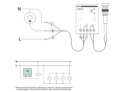 Montaż urządzenia powinien być przeprowadzony przez wykwalifikowanego elektryka. Automat AZH-S przeznaczony jest do montażu natynkowego. Przyłącze elektryczne realizowane jest poprzez solidne zaciski śrubowe o przekroju 4,0 mm², co pozwala na pewne osadzenie przewodów i minimalizację rezystancji styku. Podczas dokręcania zacisków należy zachować zalecany moment dokręcający wynoszący 0,5 Nm, aby uniknąć uszkodzenia gwintów przy jednoczesnym zapewnieniu trwałego połączenia. Sondę zewnętrzną należy umieścić w miejscu o stałym dostępie do światła dziennego, unikając bezpośredniego oświetlania jej przez sterowane źródło światła, co mogłoby prowadzić do oscylacji (cyklicznego włączania i wyłączania).
