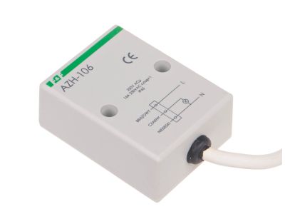 Automat zmierzchowy AZH-106 marki F&F to zaawansowane urządzenie elektro-techniczne zaprojektowane do precyzyjnego sterowania oświetleniem w zależności od natężenia światła naturalnego. Wyposażony w zintegrowany, wewnętrzny element światłoczuły, eliminuje konieczność montażu zewnętrznych sond, co znacząco upraszcza proces instalacji. Urządzenie pracuje pod napięciem znamionowym 230 V AC, wykazując wysoką tolerancję na wahania sieci w zakresie od -10% do +10%.