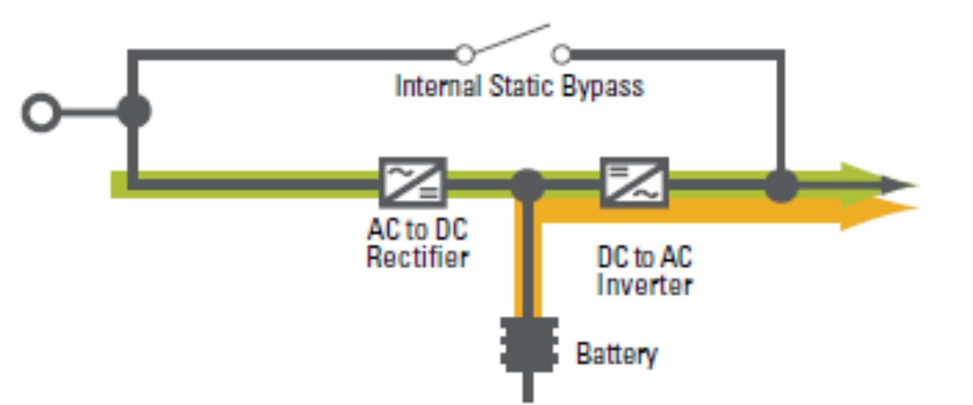 Online (double-conversion) – zapewnia pełną izolację od sieci energetycznej. Napięcie jest całkowicie regenerowane poprzez konwersję AC-DC-AC, co gwarantuje najwyższy poziom ochrony przed wszystkimi problemami zasilania. Stosowany w centrach danych, placówkach medycznych i środowiskach przemysłowych.