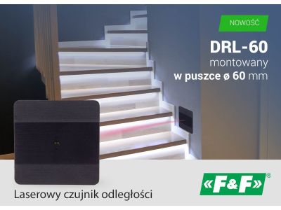 Czujnik odległości DRL-60-230-9, laserowy, do puszki fi60 czujnik ruchu do sterownia oświetl.,czarny | DRL-60-230-9 F&F