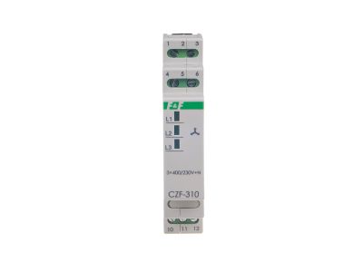 Czujnik zaniku i asymetrii faz CZF-310 marki F&F to zaawansowane urządzenie zabezpieczające, zaprojektowane z myślą o ochronie trójfazowych silników elektrycznych przed najczęstszymi awariami sieci zasilającej. Urządzenie monitoruje napięcie zasilania o wartości znamionowej 3 × 400 V + N, reagując natychmiastowo w przypadku zaniku napięcia w co najmniej jednej fazie lub wystąpienia asymetrii napięciowej przekraczającej stały próg zadziałania wynoszący 55 V. Dzięki zastosowaniu przekaźnika o maksymalnym prądzie obciążenia 10 A oraz konfiguracji styków 1 × NO/NC (styk przełączny), czujnik pozwala na bezpośrednie sterowanie cewką stycznika lub sygnalizację awarii.