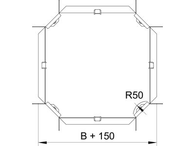 Czwórnik poziomy, do wszystkich typów koryt o wysokości boku 60mm, ocynkowany galwanicznie. Szerokość: 150mm.