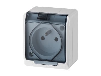 Gniazdo hermetyczne natynkowe pojedyncze z uziemieniem 2P+Z IP44, białe-dymne, Hermes | 0321-01 Elektro-Plast Nasielsk
