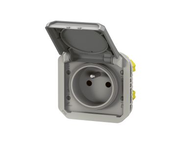 Gniazdo pojedyncze z/u 2P+Z 16A 250V IP55 zaciski automatyczne (mechanizm) szary, Nowe Plexo | 069551L Legrand