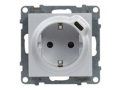 Gniazdo Schuko 2P+Z 16A 250V + USB TYP C 1,5 A 5 V, aluminium, Suno | 721329 Legrand