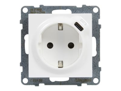 Gniazdo SCHUKO 2P+Z - 16 A - 250 V - + USB TYP C - 1,5 A - 5 V . Gniazdo umożliwia podłączenie urządzeń elektrycznych i elektronicznych. Mechanizm wymaga dodania ramki. Kolor Biały.