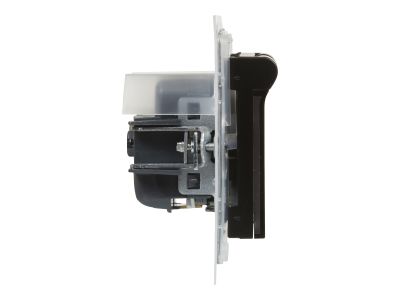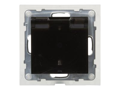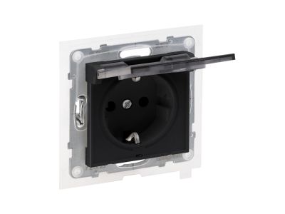 Gniazdo SCHUKO 2P+Z- 16 A - 250 V - z przesłoną IP44 - zaciski automatyczne . Gniazdo umożliwia podłączenie urządzeń elektrycznych i elektronicznych. Mechanizm wymaga dodania ramki. Kolor Czarny .