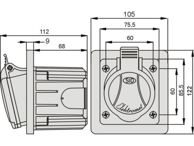 Gniazdo Skośne Podtynkowe GSP 16/5 Gniazdo 16A/400V 3P+N+Z | 921850 Elektromet