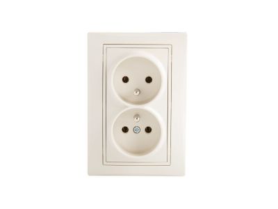 Gniazdo zasilające podwójne francuskie, kompletne DOMO 01-1261-103, kremowe