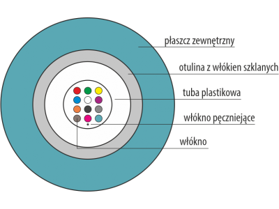 | Kolor włókien | 1. Czerwony, 2. Zielony, 3. Żółty, 4. Niebieski, 5. Biały, 6. Fioletowy, 7. Pomarańczowy, 8. Czarny, 9. Szary, 10. Brązowy, 11. Różowy, 12. Turkusowy |