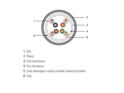 Instalacyjny kabel skrętkowy SecurityNET przeznaczony jest do wykonywania połączeń pomiędzy punktami dystrybucyjnymi sygnałów multimedialnych, a gniazdami przyłączeniowymi użytkowników. Kabel skrętkowy FTP (ekranowany) nadaje się idealnie do instalacji w sieciach komputerowych, telefonicznych, systemach CCTV itp., narażonych na zakłócenia elektromagnetyczne. Zastosowanie ekranu minimalizuje ryzyko zakłóceń, które występować mogą np. przy ułożeniu kabla we wspólnym korytku z kablem prądowym. Posiada powłokę zewnętrzną PVC. Kabel spełnia wymagania norm okablowania strukturalnego: ISO/IEC 11801, EN 50173, EIA/TIA 568-B.2.