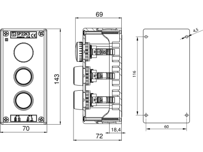 Kaseta sterownicza K3 z przyciskami START - STOP z sygnalizacją świetlną SP22K3 | SP22K3\06-1 Spamel
