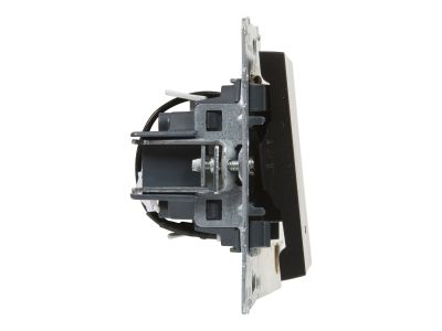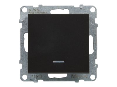 Łącznik jednobiegunowy podświetlany - 10 AX - 250 V - zaciski automatyczne. Łącznik służy do włączania i wyłączania oświetlenia. Mechanizm wymaga dodania ramki. Kolor Czarny .