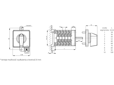 Segmentowa budowa łączników z podwójnymi krzywkami umożliwia tworzenie dowolnych programów łączeń w funkcji położenia pokrętła napędu. Stosując dobraną liczbę zębów zębatki w mechanizmie napędu można uzyskiwać kąty skoku pokrętła co 30°, 45° lub 90°, np.: przy 30° daje nam maksymalnie 12 pozycji pokrętła. Ponadto rozłączniki SK charakteryzują się małymi gabarytami, stopniem ochrony IP20 zwiększającym bezpieczeństwo instalatora.
