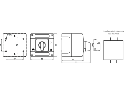 Łącznik krzywkowy 16A, rozłącznik 0-1 (2-biegunowy), w obudowie OB12 z czołem zamykanym żółto/czerw