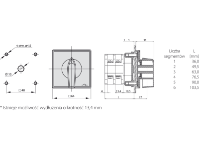 Łącznik krzywkowy mocowany do pulpitu 25 A Rozłącznik 0-1 (2 - biegunowy) z czołem III żółto-czerwonym (IP65) zamykane ŁK25R-1.828/P08