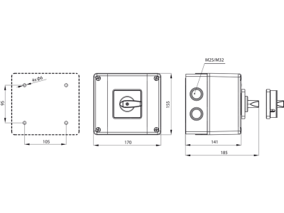 Łącznik krzywkowy 63A, rozłącznik 0-1 w obudowie OB16