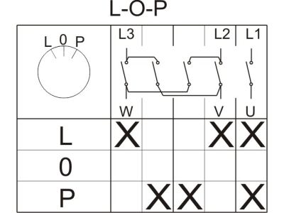 Łącznik krzywkowy Zmiana kierunku obrotów L-0-P IP-65 ŁK 100-42
