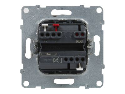 Łącznik rolet - 6 AX - 250 V - 3 pozycyjny: góra, dół, stop - bezpośrednie sterowanie roletami . Łącznik rolet służy do podnoszenia lub opuszczania rolet. Mechanizm wymaga dodania ramki. Kolor Biały.