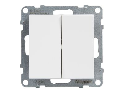 Łącznik schodowy podwójny - 10 AX - 250 V - zaciski automatyczne. Łącznik służy do włączania i wyłączania oświetlenia. Mechanizm wymaga dodania ramki. Kolor Biały.