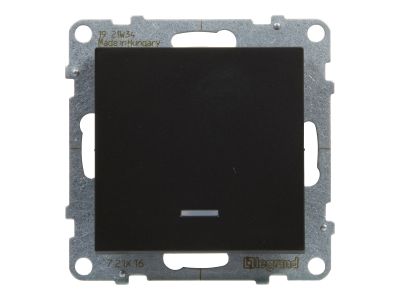 Łącznik schodowy z podświetleniem - 10 AX - 250 V - zaciski automatyczne. Łącznik służy do włączania i wyłączania oświetlenia. Mechanizm wymaga dodania ramki. Kolor Czarny .