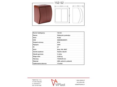 Łącznik świecznikowy podświetlany n/t IP44 brąz, VW-2L Koala | 152-52 Viplast