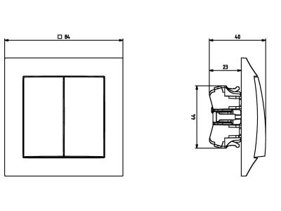 Łącznik wyposażony w dwa przyciski. Stosowany do sterowania żaluzji (podnoszenie/opuszczanie). Podnoszenie lub opuszczanie żaluzji następuje poprzez przytrzymanie przycisku. Pozwala na łączenie w obrębie dwóch oddzielnych obwodów, ale uniemożliwia łączenie ich jednocześnie. Do kompletu wymagana ramka. Można stosować do systemów ramkowych wielokrotnych.