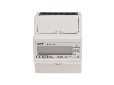 LE-01M jest statycznym (elektronicznym) wzorcowanym miernikiem energii elektrycznej. Służy do wskazań i rejestracji pobranej energii elektrycznej z możliwością transmisji danych poprzez przewodową sieć standardu RS-485 zgodnie z Modbus RTU. Dzięki transmisji danych możliwy jest zdalny odczyt parametrów i stanów licznika przez sieć internetową na komputerze PC. Licznik zużycia energii LE-01M z transmisją danych to licznik prądu przemiennego jednofazowego w układzie bezpośrednim. Licznik prądu zgodny z dyrektywą MID. Licznik prądu LE-01M pod wpływem przepływającego prądu i przyłożonego napięcia dokonuje precyzyjnego pomiaru ilości pobieranej energii elektrycznej. Pobór energii sygnalizowany jest poprzez miganie diody LED (1600 imp/kWh), a jej wartość wskazywana jest przez wyświetlacz LCD. Cyfry po przecinku oznaczają setne części kWh (0.01 kWh = 10 Wh).