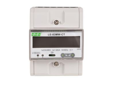 Licznik energii elektrycznej LE-03MW-CT marki F&F to zaawansowane, elektroniczne urządzenie pomiarowe zaprojektowane do pracy w sieciach trójfazowych. Jest to licznik dwukierunkowy, co pozwala na precyzyjne monitorowanie zarówno energii pobranej, jak i oddanej do sieci, co jest kluczowe w nowoczesnych instalacjach prosumenckich. Urządzenie dedykowane jest do pomiaru w układzie półpośrednim, współpracując z zewnętrznymi przekładnikami prądowymi o prądzie wtórnym 5A. Maksymalny prąd wejściowy licznika wynosi 6A, co zapewnia bezpieczny margines pracy przy znamionowym obciążeniu przekładników.
