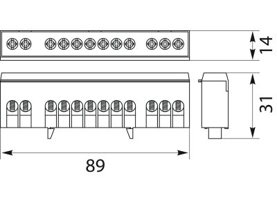 Listwa zaciskowa (izolowana) N i PE - LZG-12P, na szynę TH 35,długość:89mm,szerokość:14mm,wysokość:31mm,kolor:zielony