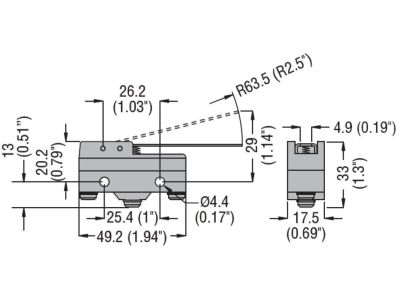 Mikrowyłącznik, dźwignia z prętem, 63mm