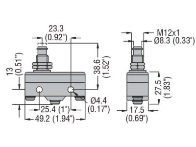 Mikrowyłącznik, trzpień wciskany, regulacja głow.