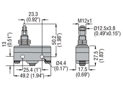 Mikrowyłącznik, trzpień wciskany z rolką, M12
