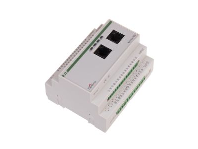 Alternatywny kod produktu: mH-IO12E6 / 6Moduł montowany jest w rozdzielni, zajmuje pole 6 modułów i zasilany jest napięciem 24V. Do wejść modułu przewodami typu UTP sprowadzane są przyciski rozlokowane na budynku. Moduł zarządza załączaniem oświetlenia lub silnikami za pośrednictwem przekaźnikowych modułów wykonawczych typu mH-R8x8, mH-R8/2, mH-RE4 lub mH-R2x16. Sterowanie odbywa się w pełni po linii niskiego napięcia 24V, co zapewnia bezpieczeństwo i możliwość dowolnego rozmieszczenia przycisków sterujących w budynku. Moduł mH-IO12E6 komunikuje się z panelami dotykowymi poprzez magistralę CAN. Dowolne wyjście modułu może być wyzwolone z poziomu paneli dotykowych poprzez wybranie konkretnego urządzenia lub sceny (grupy urządzeń). Z poziomu panelu dotykowego istnieje możliwość zaprogramowania czasowego samoczynnego załączania/wyłączania urządzeń lub grup urządzeń sterowanych z modułu wejść/wyjść.