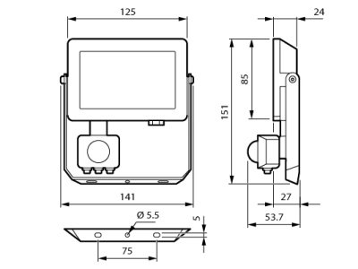 Naświetlacz LED z czujnikiem ruchu PILA BVP008 20W 1700lm 4000K MDU IP65 IK06 czarny