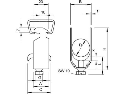 Obejma kabłąkowa kontrwanienka, 16-22mm, St, FT 2056 M3 22 FT