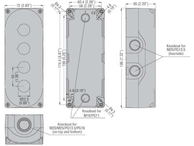 Obudowa bez wyposażenia, 4 otwory, szara