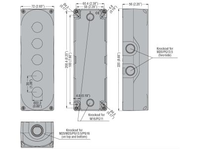 Obudowa plastikowa bez wyposażenia, szara, 5 otworów | LPZP5A8 Lovato Electric