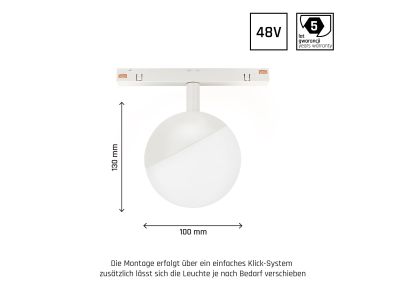 Oprawa LED GLOBE kula na szynoprzewód 100x148mm 5W 165st biała 5 lat gw. CASAMBI system SHIFT