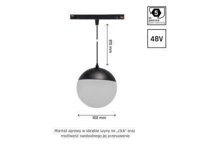 Oprawa LED GLOBE P kula zwis na szynop. 100 (850mm kabel) 5W 165st czarna 5 lat gw. DALI system SHI
