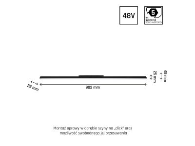 Oprawa LED LINE L na szynoprzewód 902x23x42mm 22W 100st czarny 5 lat gw. DALI system SHIFT