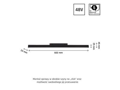 Oprawa LED LINE M na szynoprzewód 602x23x42mm 17W 100st czarny 5 lat gw. CASAMBI system SHIFT