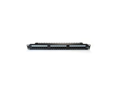 Patch-panel 24-portowy przeznaczony do montażu w szafach rack 19 (483 mm) firmy DIGITUS Professional. Odpowiedni dla przewodów o średnicy AWG 22-26 (linka/drut). Wykonany z blachy stalowej walcowanej na zimno (SECC) o grubości 1,5 mm zgodnie z EN1.4301, UNS S30400, AISI 304 oraz LMSAD110. Materiał styków: fosforobrąz. Powłoka wtyków: nikiel, złoto 0,3µ. Instalacja kabla poprzez złącze Krone LSA+, kodowanie kolorami zgodne z EIA/TIA 568 A & B. Ilość cykli włączania/wyłączania kabla przyłączeniowego z gniazda RJ45: >750 cykli zgodnie z normą ISO/IEC 11801, IEC 60603-7-5. Ilość cykli montażu kabla w złączu Krone LSA+: >200 cykli zgodnie z normą ISO/IEC 11801, IEC 60603-7-5. Materiał IDC Terminal: fosforobrąz 50 µ cynku na 60 µ niklu. Materiał PCB: FR4, UL 94V-0, grubość pokrycia 1,45 mm. Trwałość: ? 750 (ISO/IEC 11801, IEC 60603-7-5). Temperatura pracy: -20°C/+70°C. Rezystancja izolacji > 500MOhm.