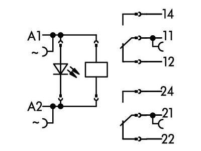 Podstawka z wtykanym przekaźnikiem i wskaźnikiem statusu, 2 zestyki przełączne (2P), 24V AC, szara | 788-512 Wago