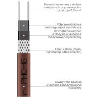 Samoregulujące przewody grzejne reprezentują bardziej zaawansowaną technologię. Ich rdzeń wykonany jest z polimeru z dodatkiem cząstek grafitu, którego oporność zmienia się w zależności od temperatury. W miejscach chłodniejszych przewód automatycznie zwiększa swoją moc grzewczą, natomiast w cieplejszych - zmniejsza ją lub całkowicie wyłącza. Ta unikalna właściwość samoregulacji eliminuje ryzyko przegrzania i znacząco zwiększa bezpieczeństwo użytkowania. Przewody samoregulujące idealnie sprawdzają się w zastosowaniach o zmiennych warunkach temperaturowych, takich jak ochrona rur przed zamarzaniem, ogrzewanie rynien i rur spustowych czy instalacje przemysłowe. Dodatkową zaletą jest możliwość przycinania ich na dowolną długość bez utraty właściwości grzewczych oraz nakładania się kabla na siebie bez ryzyka przepalenia.