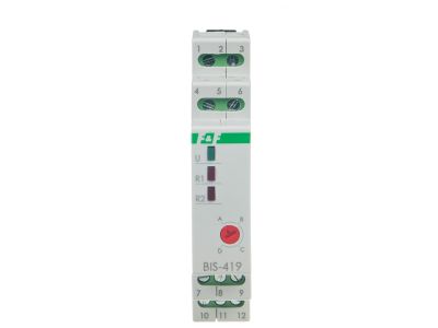 Przekaźnik BIS-419 posiada dwie sekcje załączające i umożliwia załączenie zgodnie z wybraną sekwencją dwóch obwodów (gałęzi) oświetlenia lub innych odbiorników z kilku różnych punktów.