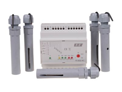 Przekaźniki PZ-832 służą do wykrywania obecności cieczy przewodzących prąd elektryczny na poziomach zamontowanych sond zalania.