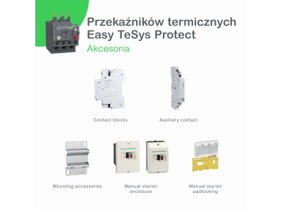 Przekaźnik LRE jest zabezpieczeniem termicznym przeznaczonym do stosowania w kombinacji z wkładkami bezpiecznikowymi lub wyłącznikami magnetycznymi GV2 L i GV3 L. Zakres nastawy prądowej wynosi 12-18 A 50/60 Hz, a klasa wyzwalania 10 A zgodnie z normą IEC 60947-4-1. Może być montowany bezpośrednio do styczników Easy TeSys Control z zaciskami śrubowymi. Chroni przed asymetrią oraz przeciążeniem silniki o mocy 7,5 kW przy napięciu 400 V AC. Zapewnia ręczny lub automatyczny reset, pomocniczy styk wyzwalający oraz wskaźnik zadziałania. Dostępny na całym świecie, posiada certyfikację europejską (IEC) oraz jest zgodny z Green Premium (RoHs/Reach).